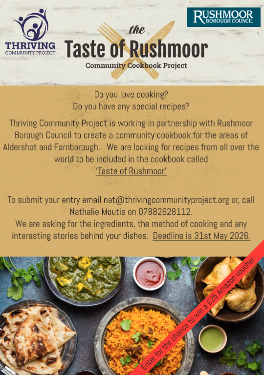 We are currently working with Rushmoor Borough Council on the launch event details for our community cookbook, 'Taste of Rushmoor'.
