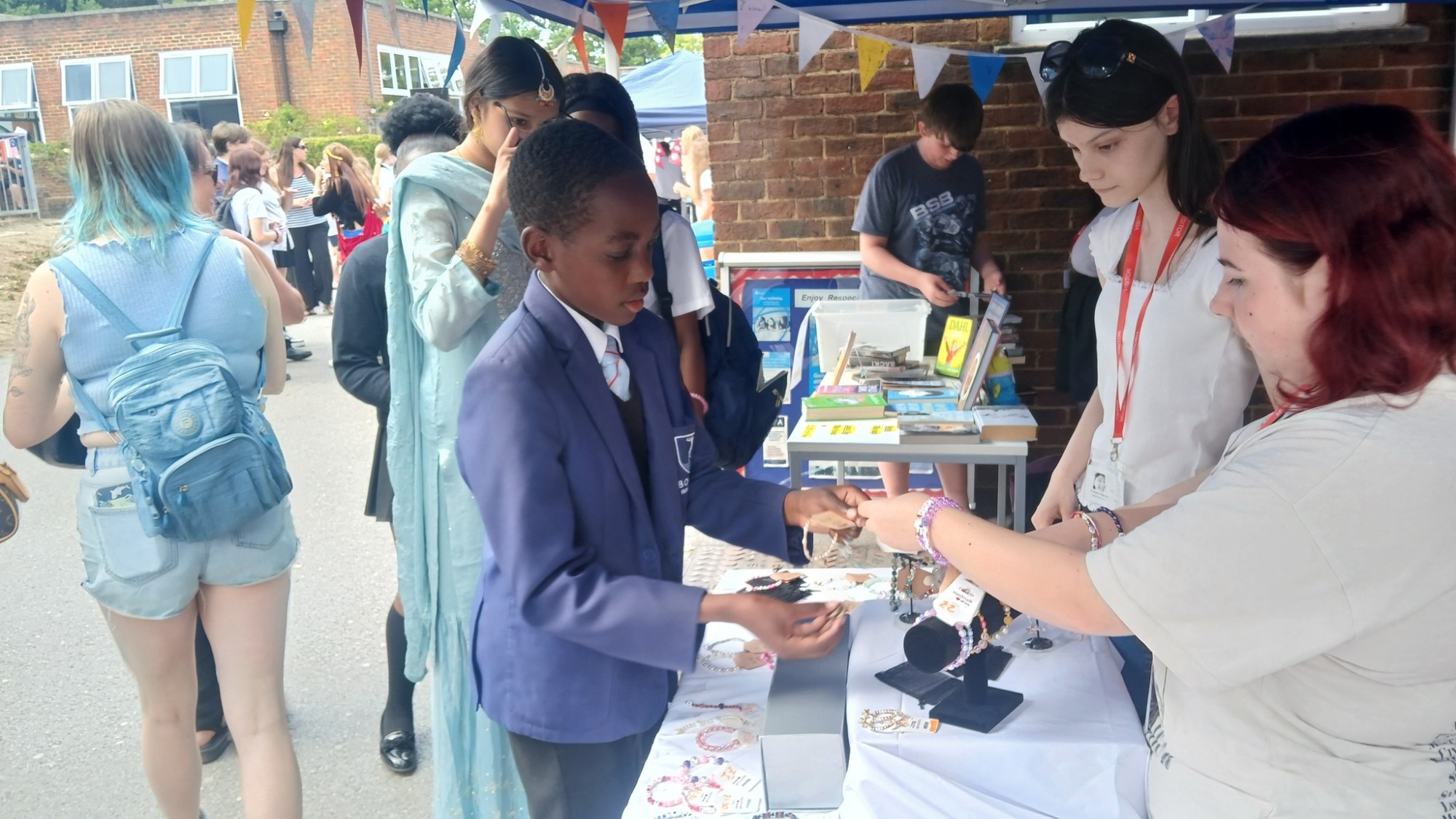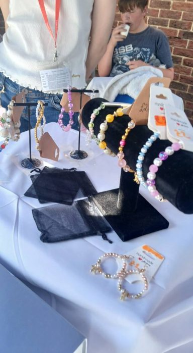 On 17th July 2025, Chloe and her friend sold their bracelets, earrings and phone charms at their school, Bohunt Farnborough's Global Fair.